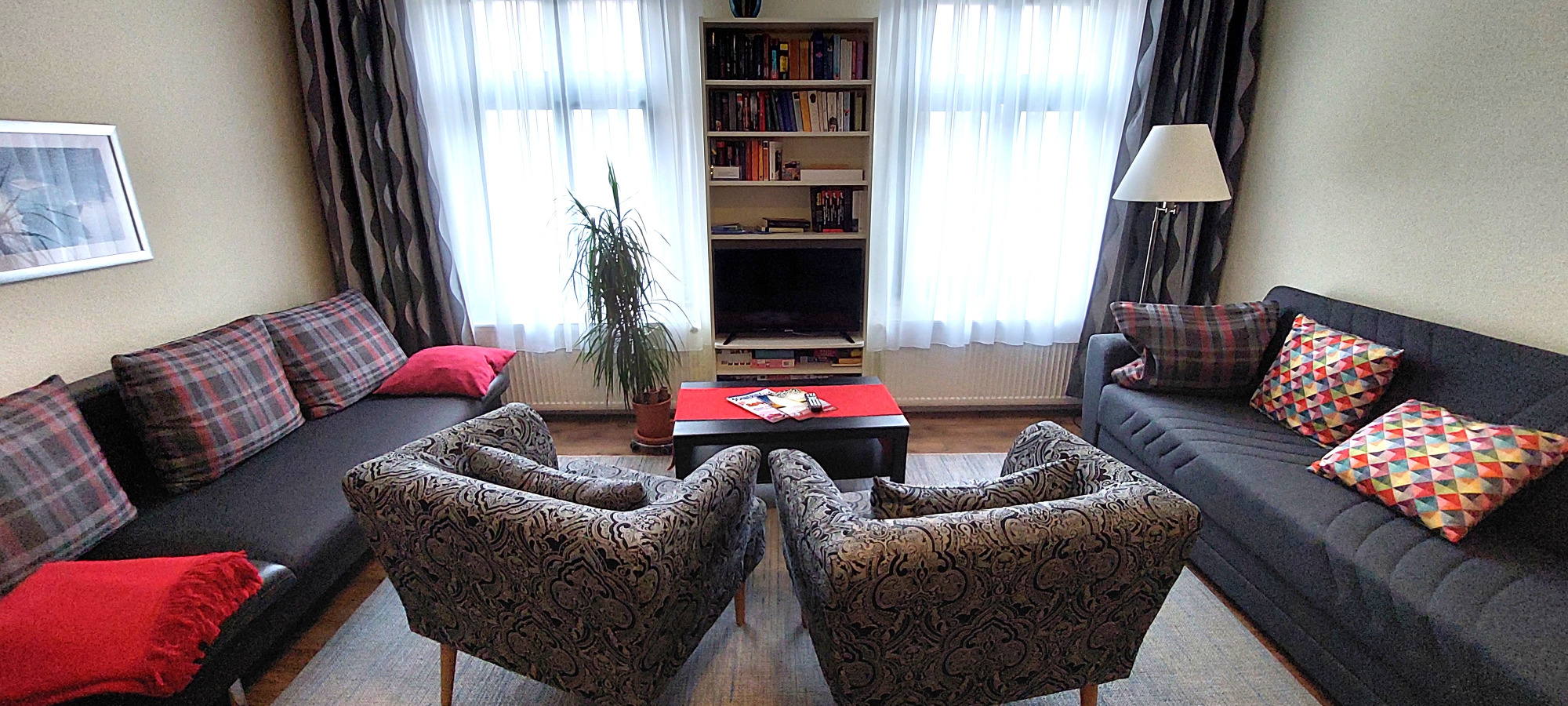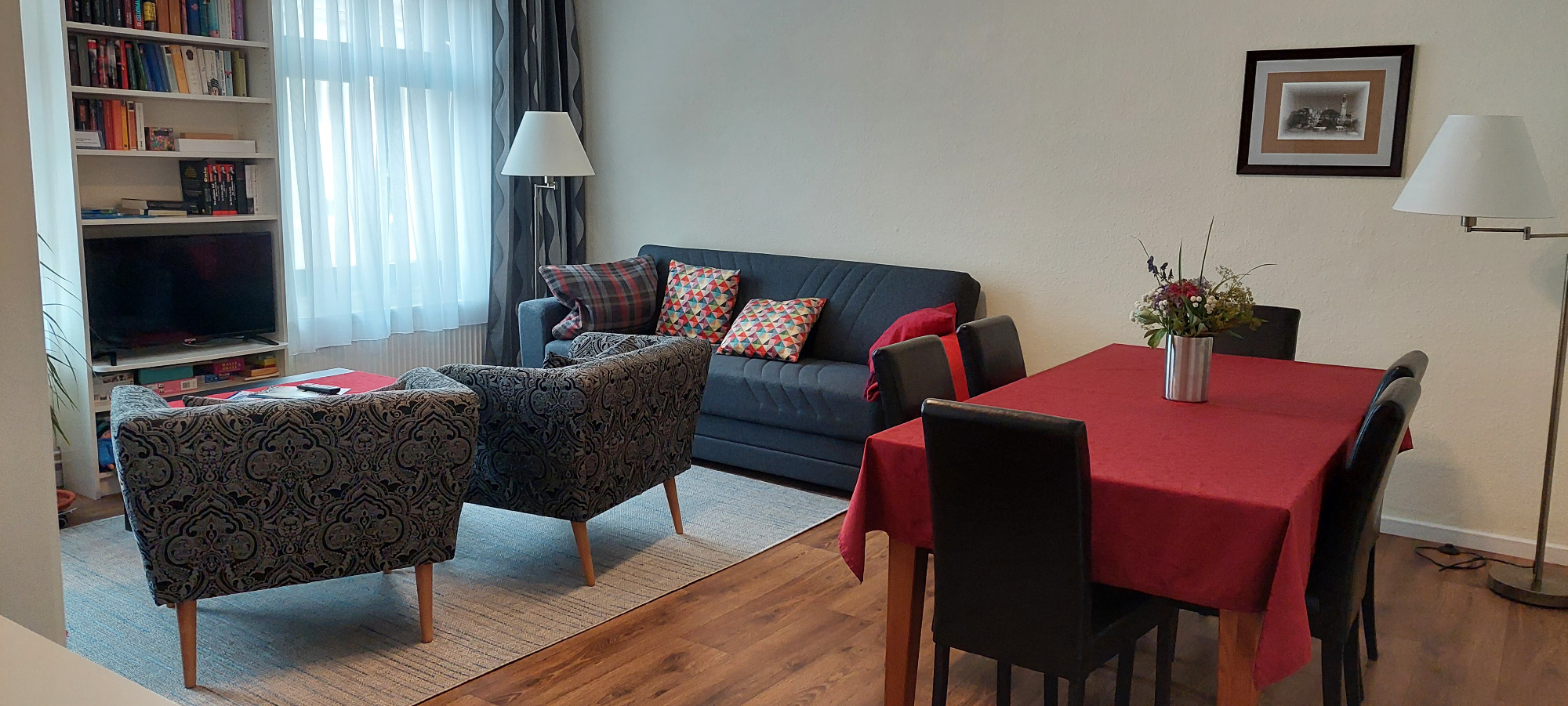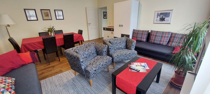Die Ferienwohnung ist eine abgeschlossene Wohnung (60m²) mit einem Wohnzimmer, einem Schlafzimmer, Küche und Bad. Es ist eine Nichtraucherwohnung.