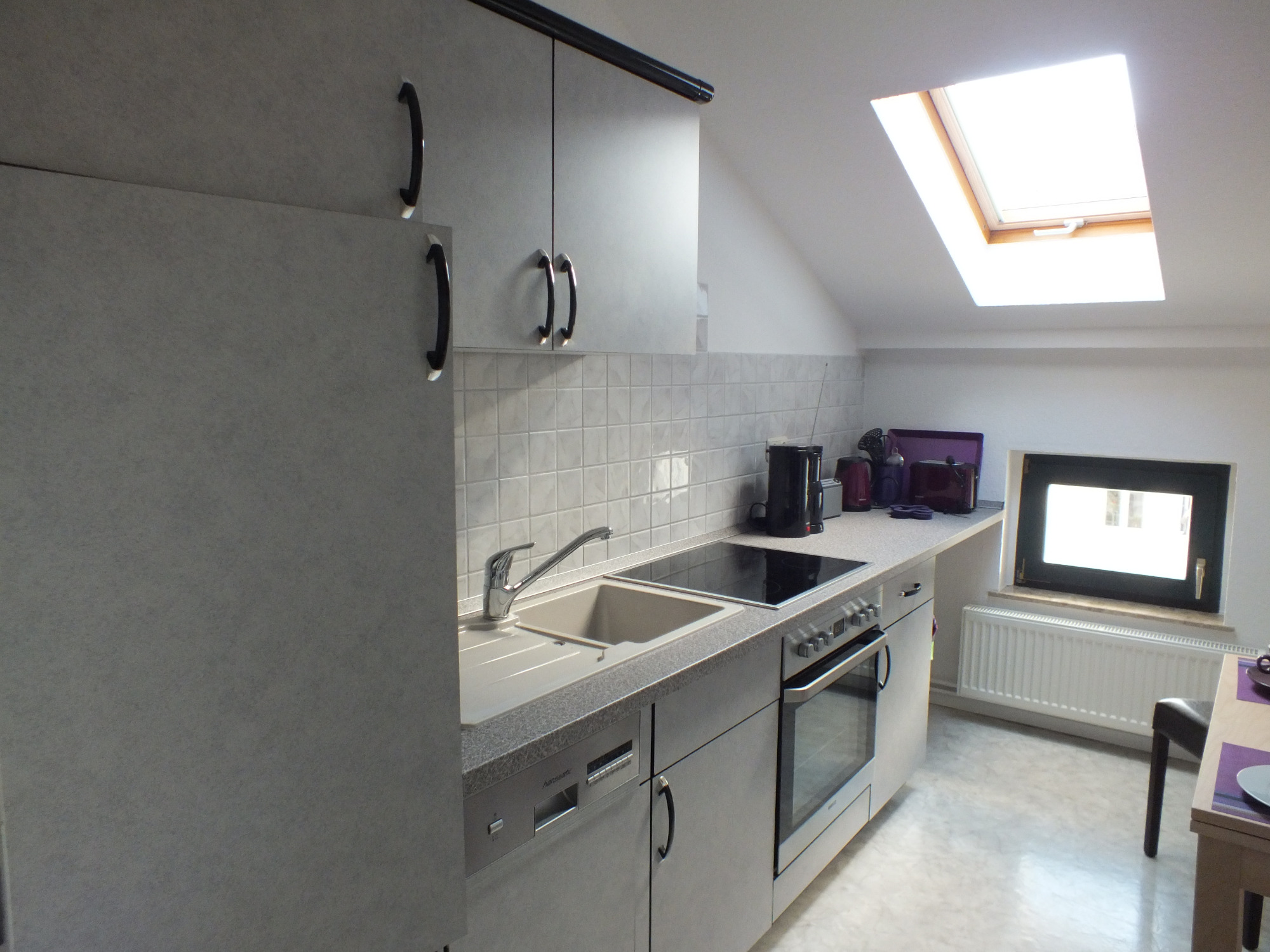 Die Küche ist mit Mikrowelle, Elektroherd, Geschirrspüler, Kaffemaschine, Wasserkocher,Toaster und Geschisshandtüchern ausgestattet.